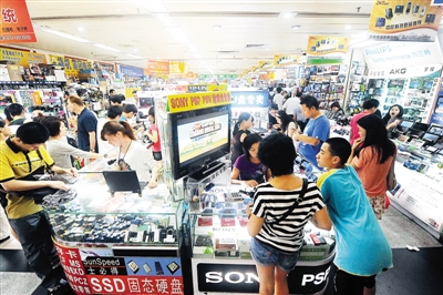 7月18日,记者在华强北赛格广场看到,各柜台前仍旧站满了顾客。深圳商报记者 廖万育 摄
