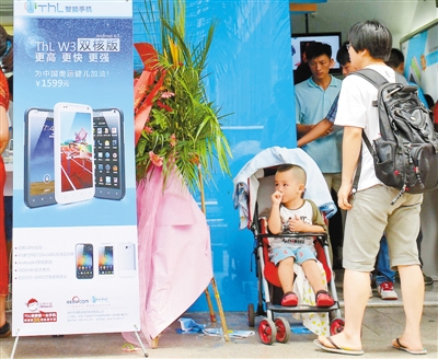 THL手机是深圳手机的后起之秀,华强北体验中心店的员工说,华强北有4间THL手机店,高峰时候每天能卖几百台。
