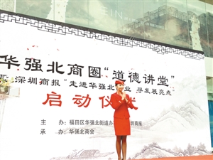 在昨天的启动仪式中,福田区常委、宣传部部长孙静在致词中称,华强北商圈“道德讲堂”是一大创举,弘扬商业诚信、规范经营,倡导商家把诚信作为创业致富之本,在华强北逐步告别“山寨文化”、实现新转型升级的今天,具有更积极的意义。