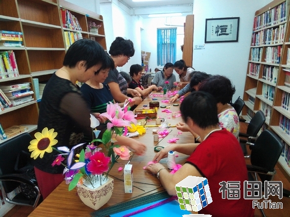 深圳新闻网福田讯(记者 申文峰 通讯员 戴燕彩 报道)2015年10月22日早上,华红社区服务中心在社区图书馆开展了丝网花兴趣小组的第一节活动。活动请来了专业的老师授课,所以此次活动吸引了不少社区居民参加,很多社区居民也都希望通过此次活动学会如何制作丝网花,用花朵点缀、娱乐生活,同时希望认识到更多的朋友。