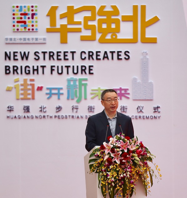 福田区长高圣元在开街仪式上指出,华强北在国内享有盛誉。华强北重新开街后将有地上和地下共600万平方米的立体性商业空间。同时也是集创客和消费的立体空间。华强北今天重新起航,打造国际电子商业名街。