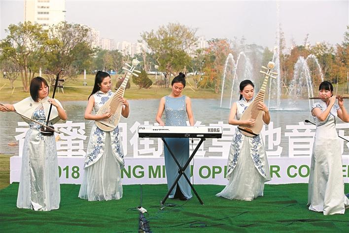 据悉,为更好地把高雅艺术引进社区文化活动,去年9月至12月,香蜜湖街道农园社区在周末及节假日的下午,以“中外流行音乐会、古典音乐会、中国民乐音乐会、新年音乐会”为主题共举办了10场社区“草地音乐荟”。其中,既有民歌独唱及民乐演奏,也有西方古典室内乐演奏及独唱;既有“爵士乐之夜”“小夜曲之夜”“流行之夜”音乐会,也有青少年专场音乐会和以汉文化为主展现中国古典器乐声乐舞蹈魅力的音乐会。形式多样,内容新颖,点燃居民群众参与文化活动的热情,献上一场场接地气的文化盛宴。(记者 温银妮 通讯员 梁荣)