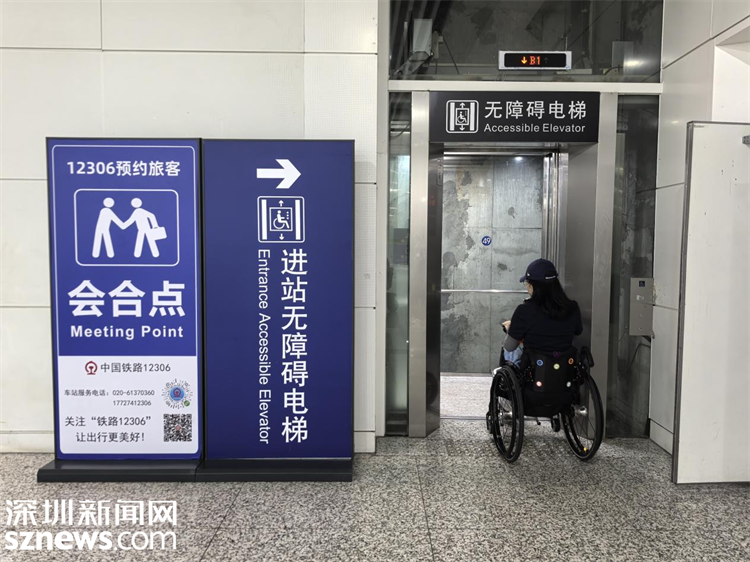 同时,福田高铁站的无障碍设施也运行良好,港澳服务U站的咨询服务、出租车无障碍接驳、无障碍电梯等设施均为残疾人等有需要人群提供了便利、安心的出行体验。