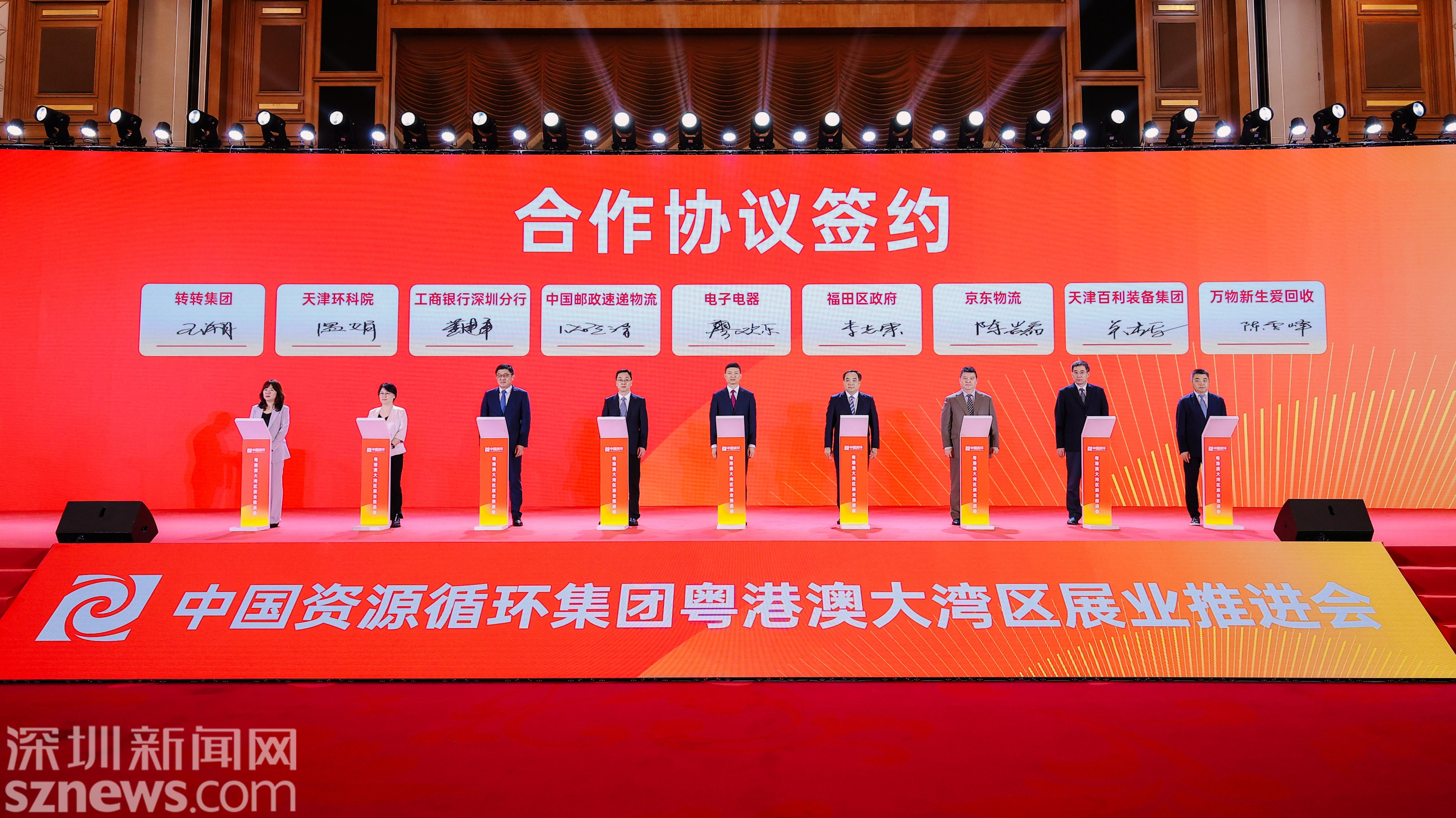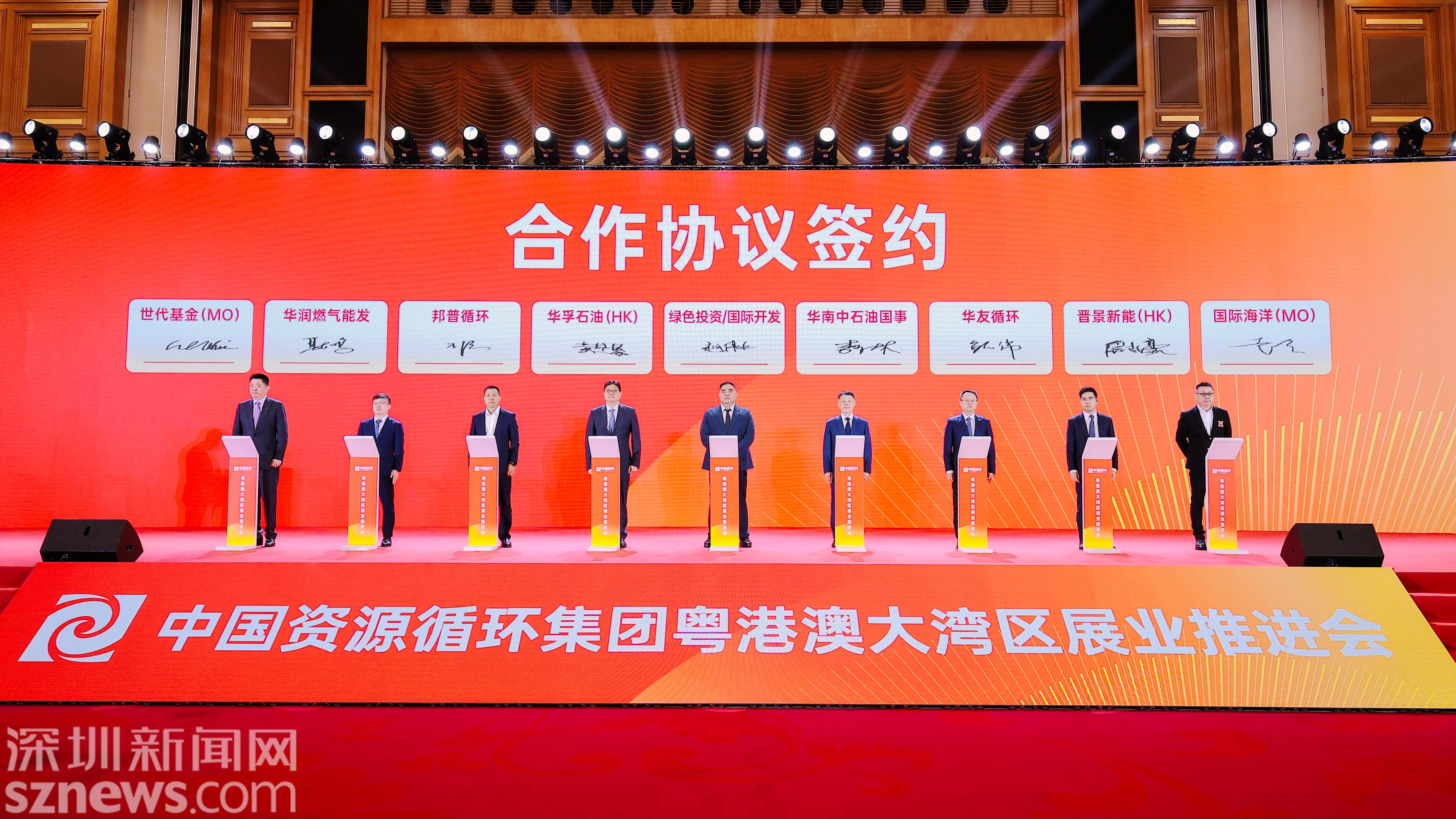 期间,中国资源循环集团绿色投资有限公司分别与盐田区政府、罗湖区政府、龙岗区政府、深圳标准院等签署合作协议;中国资源循环集团电子电器有限责任公司分别与福田区政府以及相关合作企业签署合作协议;中国资源循环集团绿色投资有限公司、中资环国际开发公司分别与相关合作企业签署合作协议。