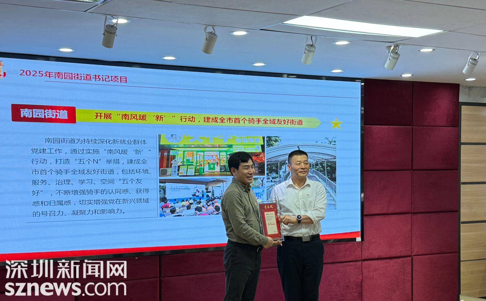 本次会议的亮点之一是揭榜“书记项目”。南园街道计划开展“南风‘暖’新行动”,打造全市首个骑手友好型街道。该项创新实施“五个N”举措,打造N个便利场景、深化N项服务举措、建立N个共治制度、链接N种优质资源、优化N个服务空间,为骑手群体提供更加贴心、便捷的服务,不断提高新就业群体安全感、获得感、幸福感。