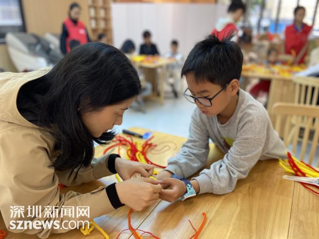 最热闹的环节是“铜钱创造营”,在工作人员的指导下,彩色扭扭棒在孩子们手里七十二变,首先将金色扭扭棒扭出圆形,在内圈里绕成四个弧形,然后捏成圆滚滚的铜钱胚,最后用红绳把铜钱打上吉祥结串联起来,七枚铜钱摇身变成会讲故事的时空项链。