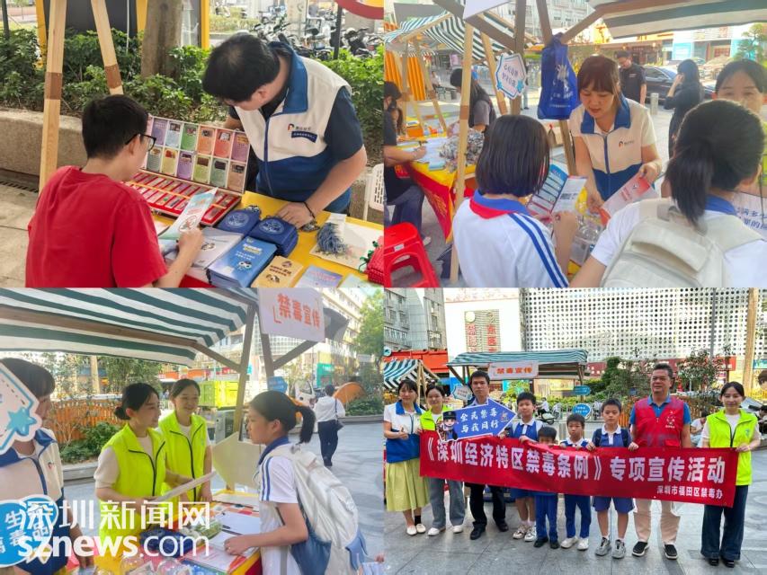 在沙埔头社区、巴登社区开展的“禁毒普法市集”,吸引了众多居民参与。活动现场,社区工作人员和禁毒志愿者通过悬挂横幅、发放宣传手册、设置展板等方式,向居民详细解读《深圳经济特区禁毒条例》的重点内容,包括毒品危害、法律责任及举报途径等。活动还设置了“禁毒知识问答”“禁毒趣味知识连连看”等互动环节,提醒居民尤其是青少年群体警惕“奶茶”“跳跳糖”等隐蔽性极强的毒品,倡导树立“珍爱生命,远离毒品”的理念。