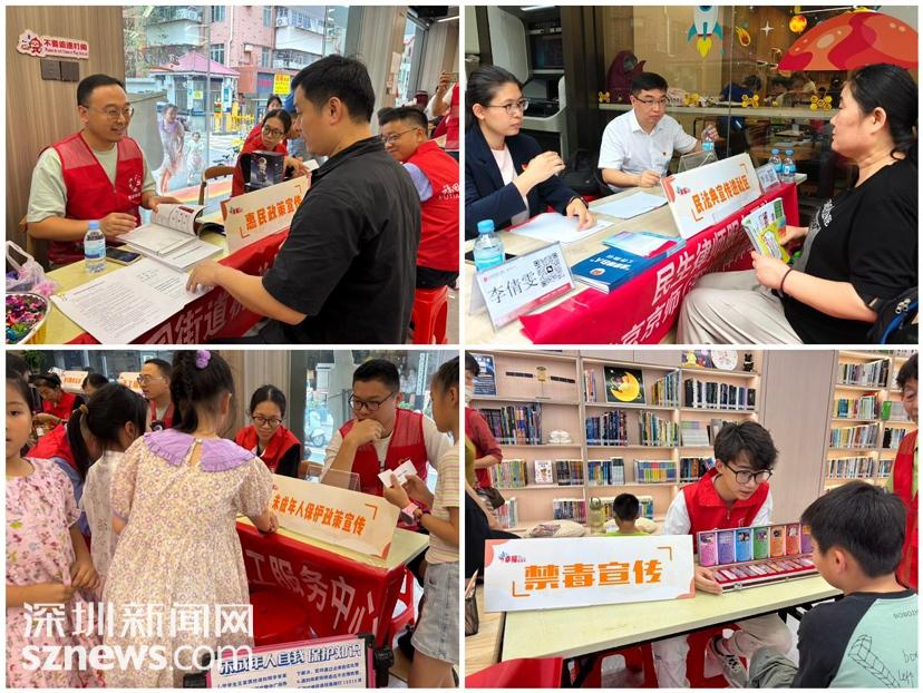 活动现场,惠民政策宣传摊位前人头攒动。机关第五党支部党员通过问答互动,为居民解读养老服务、残疾人帮扶、低保政策等民生热点,让政策“听得懂、用得上”。民法典宣传摊位则通过趣味问答、法律咨询等形式,普及反恐法律知识,引导居民用法治思维解决问题。“未成年人保护”摊位通过有奖竞答,教会孩子们“自我保护”技能,家长纷纷点赞:“这样的教育既生动又实用!”禁毒宣传通过仿真模型展示,直观揭露毒品危害,青少年在互动中树牢拒毒意识。
