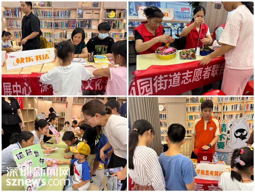 文化体验区洋溢着欢声笑语。在“快乐书法”摊位,深圳市博乐文化艺术培训中心的老师挥毫示范,带领居民感受笔墨丹青的魅力;手工绢花制作摊位前,南园街道志愿者联合会手把手教居民将绢布化作栩栩如生的花朵,亲子家庭在协作中体味非遗匠心。“眼明手快 脑洞大开”互动游戏区,孩子们叠纸杯、猜谜语,欢穗儿童成长中心用趣味游戏激发儿童创造力;学而思素养摊位则以人文科学有奖问答,让知识在轻松氛围中传递。