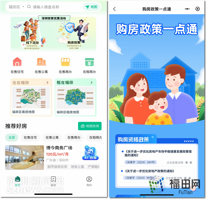 深圳新闻网2025年7月3日讯(记者 黄卓坚 通讯员 杨海林 李娜)近日,福田区住房和建设局联合深圳市不动产运营服务行业协会打造的“住(驻)在福田房产超市”正式入驻i福田小程序。该平台首创AI赋能、三方(政、企、协会)协同,精准匹配“人-房-政策”,并集政策发布、线下好房节活动、“菜单式”云看房服务于一体。现首批30多家房地产开发、不动产运营企业携福田核心区域优质在售住宅、公寓、商办和在租商办项目已入驻平台,开启了福田区房产服务智能、高效、便捷的全新模式。