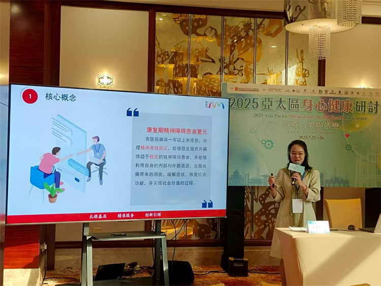深圳新闻网2025年8月4日讯(记者 李昂徽 通讯员 叶书兰 王海燕)近日,2025年亚太区身心健康研讨会在澳门举行,福田区精神康复者家属资源中心受邀参会,就福田区精神残疾人康复服务领域创新实践——“患者-家庭-社区”三位一体康复服务模式进行专题分享。同时,通过交流学习精神残疾人前沿服务理念、方法及最新研究成果,提升福田区残疾人工作者专业能力和服务水平,促进福田区残疾人事业高质量发展。