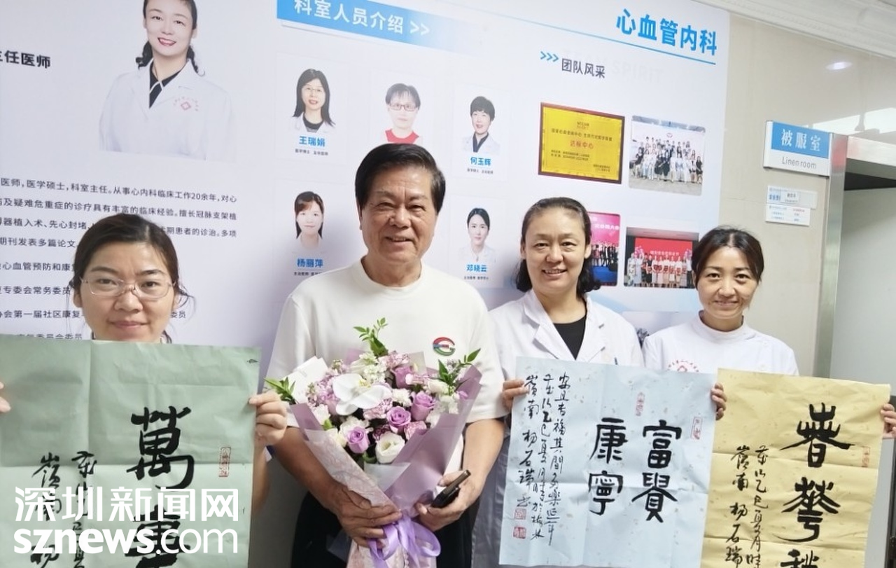 深圳新闻网2025年8月6日讯(记者 谢秋平 通讯员 董娜娜)在深圳市福田区第二人民医院心血管内科,一位74岁的退役军人、书法家杨石瑞老人与医护人员之间,上演了一场充满温情的“双向奔赴”。这不仅是一次成功的诊疗,更是一段以笔墨为媒、传递深厚医患情谊的佳话。