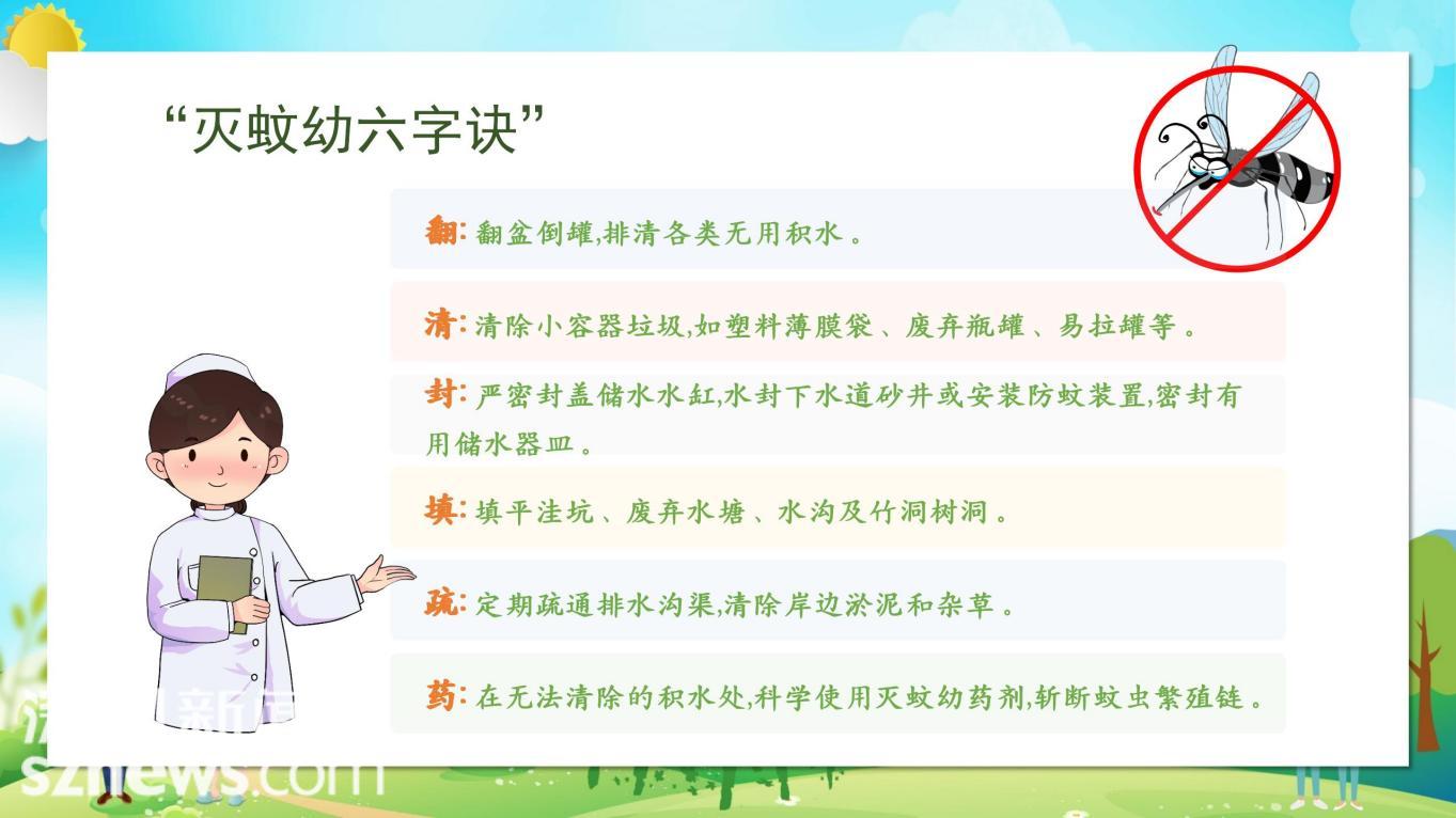 社区建立健全“早发现、早报告”的应急处置响应机制,确保疑似情况第一时间得到专业处理。行动中,社区大力推广简单易行的“灭蚊蚴六字诀”——“清、疏、填、翻、通、换”,成为居民参与防蚊的实用指南。