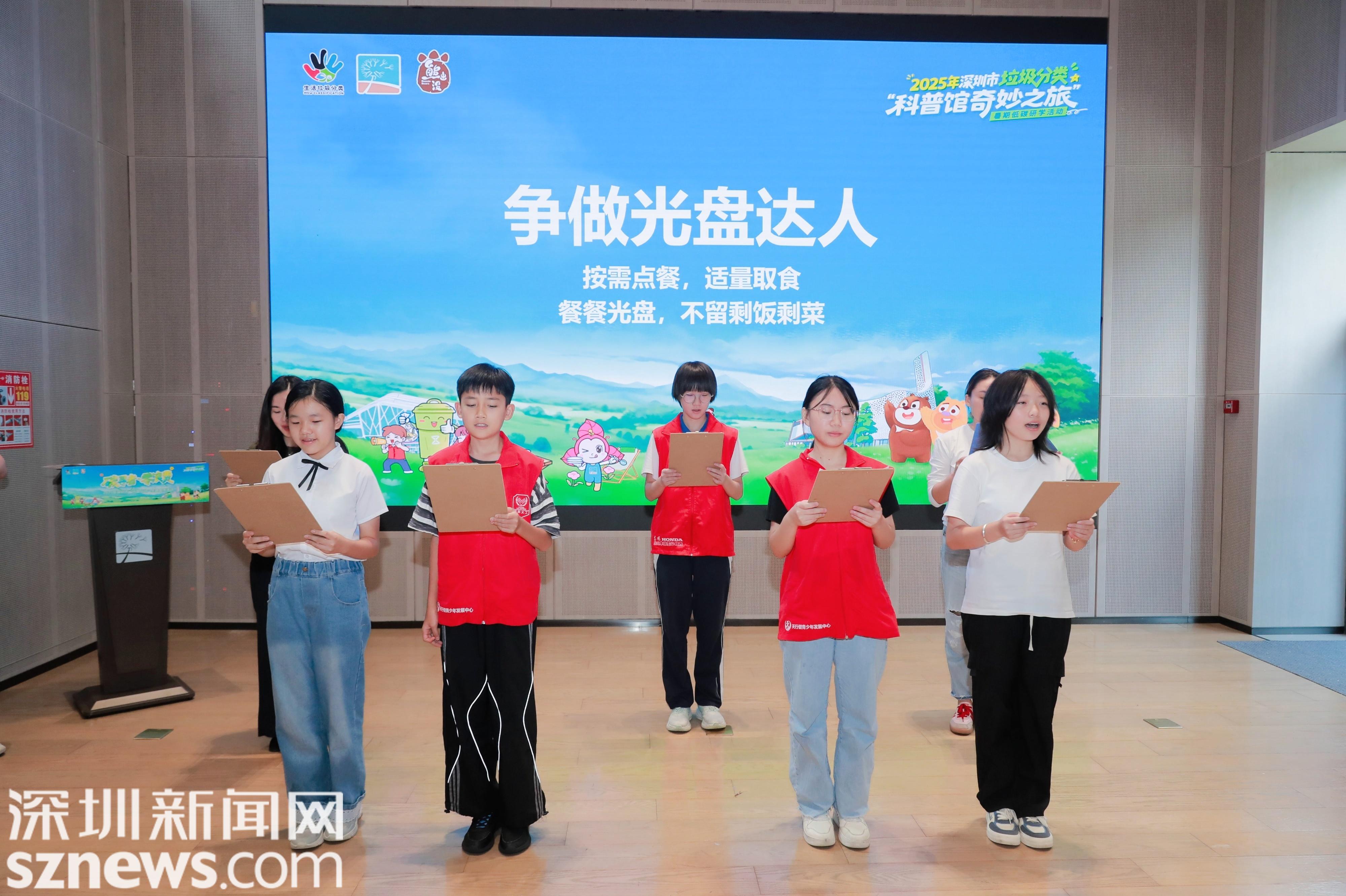 本次“光盘行动”主题宣传活动,同时也是市科普馆(福田馆)于8月13日正式开营的首期环保探秘营的闭营典礼。据悉,该探秘营是市科普馆(福田馆)为响应2025年深圳市垃圾分类“科普馆奇妙之旅”暑期低碳研学活动要求而特别策划的系列活动之一。该探秘营以“‘碳’寻者·‘零’浪费”为主题,注重多学科知识融合及互动实践体验,旨在提升青少年垃圾分类、光盘行动、源头减量等方面的低碳环保意识。