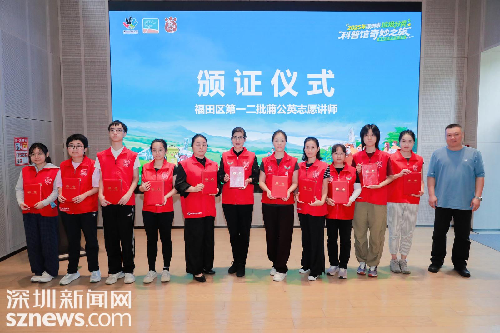 此外,活动现场还为近期通过培训考核的福田区第一、二批蒲公英志愿讲师代表颁发认证证书,激励他们发挥深圳垃圾分类环保宣传先锋的引领作用,号召更多市民群众践行“光盘行动”“源头减量”“垃圾分类”等低碳环保理念,持续激发全民参与的热情。
