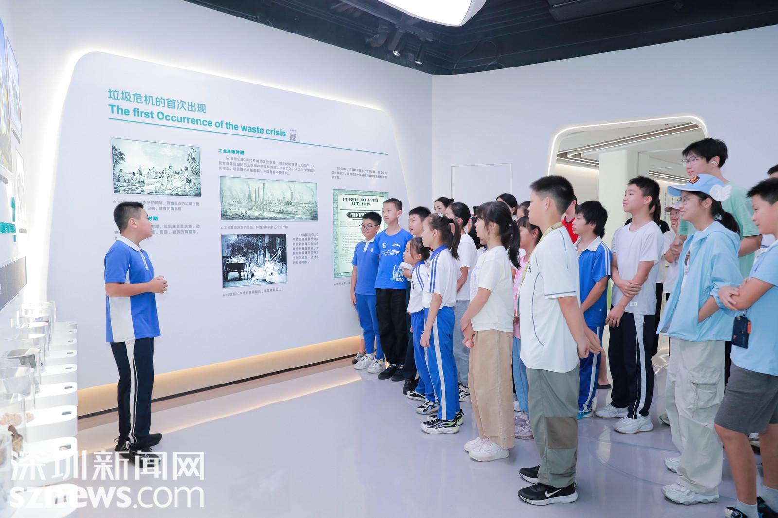 “各位访客,大家好!欢迎来到深圳市生活垃圾分类科普教育馆……”在“我是小小讲解员”培训课上,学生们在专业讲解员指导下,学习如何以清晰的发音、自信的姿态向公众传播环保知识。经过多次模拟讲解,学生们的表达能力与引导能力均得到显著提升。