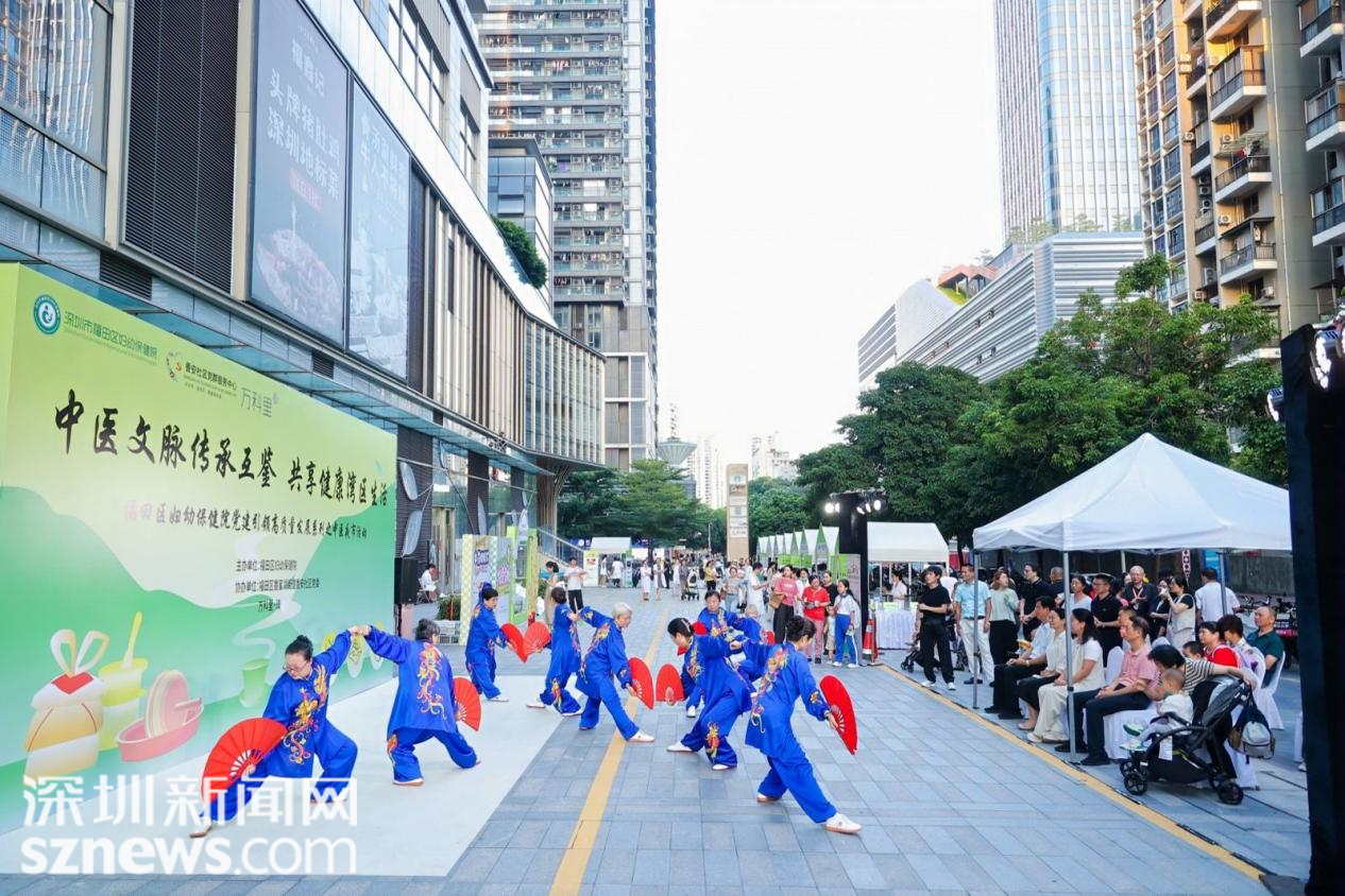在融入中医药文化元素的拍照打卡区,不少市民朋友纷纷拿起手机,记录中医药文化与都市潮生活共舞的美妙夜晚。八段锦、太极扇等中医文化展演行云流水,点燃了观众的热情。“中医药智慧令人惊叹。逛个夜市就体验了中医理疗,还学到这么多中医养生知识,来对了!”家住安托山地铁站附近的江小姐开心地分享参与活动的感受。