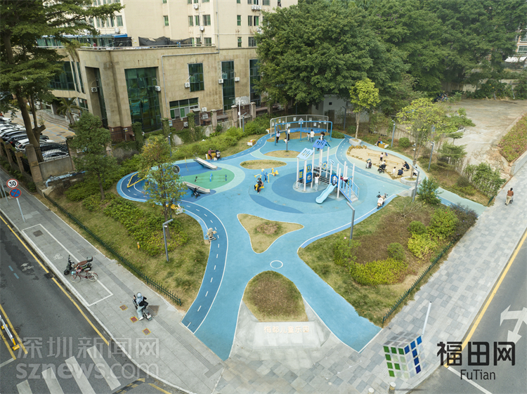 在提升过程中,福田区坚持绿色低碳理念,长富金茂大厦片区的老旧小区整治工程在屋顶使用耐磨损、易维护等特点的灰绿色反射隔热涂料作为面层材料,不仅延续了片区原有的色彩策略,与周边楼宇的屋顶整体色调保持协调,夏季还有效防止屋顶因暴晒升温。在公园、屋顶绿化、户外广场改造提升中,选用透水铺装、设置雨水花园,下雨不积水,还能给植物“喝饱水”,海绵城市技能点满。