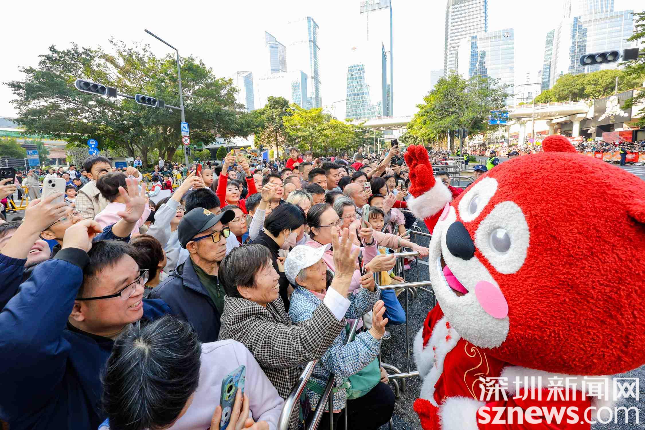 作为深圳行政、文化、金融中心,福田以核心区担当创造价值、引领风尚。此次巡游中,全原创IP矩阵“福气家族”全程担任文化使者:7米高的“福气”化身齐天大圣,4米高的“福潮”以红树林招潮蟹为原型,近10米高的“福鹭”怀抱“福鱼”,6米高的“福獭”手托宝塔,分别传递不同美好寓意,引发合影热潮。