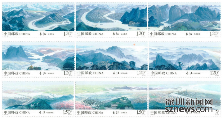 《长江》特种邮票一套9枚,邮票规格60毫米×30毫米,全套面值13.20元。每版1套,整版规格220毫米×120毫米。长江是亚洲第一长河和世界第三长河,其流域生态类型多样,水生生物资源丰富,养育了1/3中国人口,也孕育出丰富多彩的文化与自然遗产。