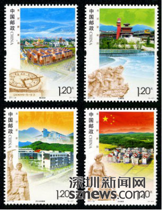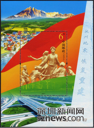 《美好新家园》特种邮票1套4枚,小型张1枚,邮票图名分别为:“震后新城”、“古镇新貌”、“民生设施重建”、“乡村新居”,小型张图名为:“美好新生活”。邮票面值4.80元、小型张面值6元。